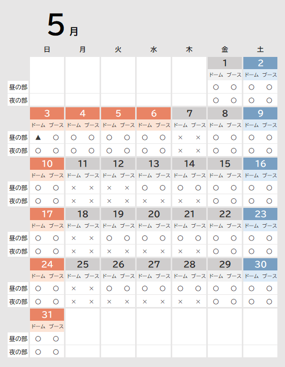 BBQ空き状況カレンダー